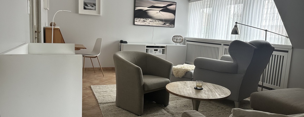 Wohnzimmer: Schlafcouch, diverse Wohnmöbel, 55 Zoll Smart-TV, DVD, Stereoanlage, Telefon, W-Lan.